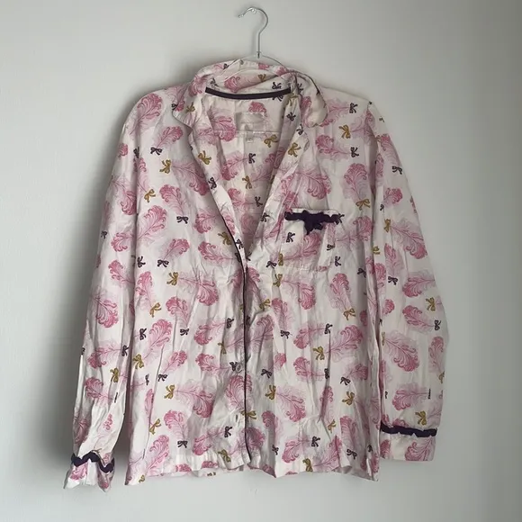 Victoria’s Secret Gold Label Feminine Feather & Bow Print Button Down Sleep Shirt PTP: 22” Size:... Show more