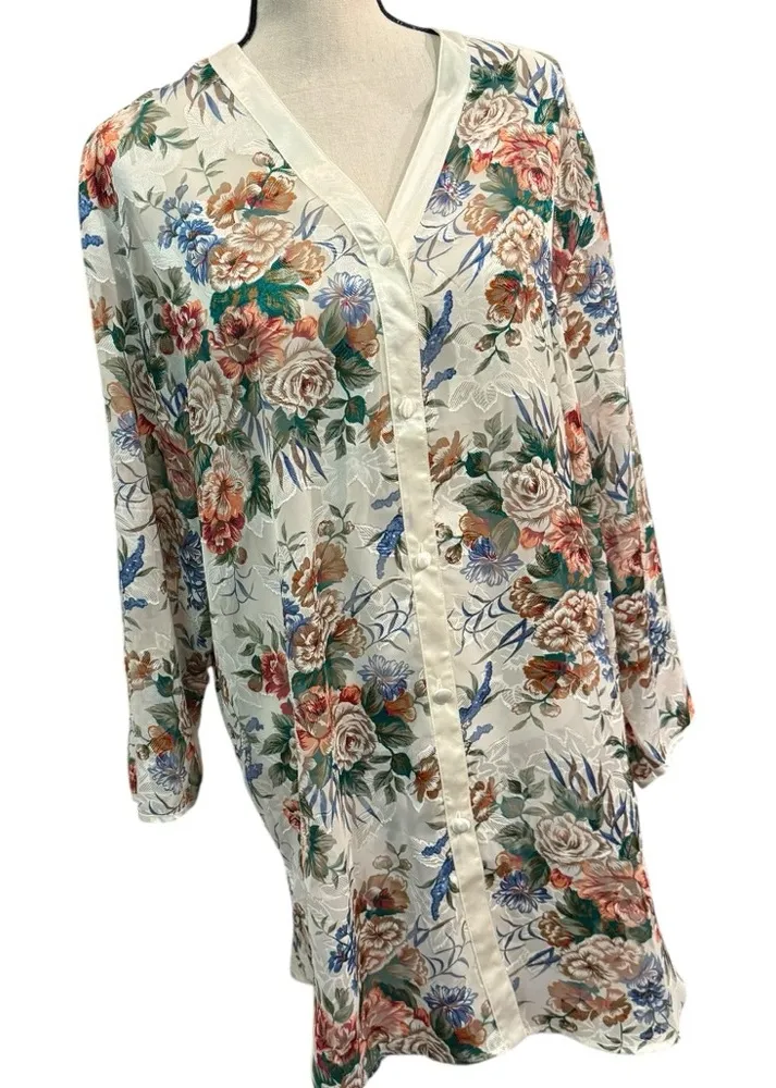 Victoria’s Secret Gold Label Floral Sheer sleep nightie button up sheer Blouse