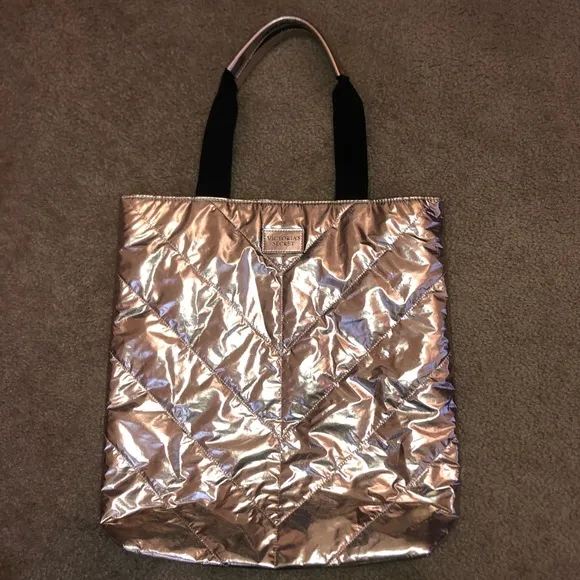Victoria’s Secret Rose gold metallic shiny quilted padded bag, measures approx 15 x 17 inches, great... Show more