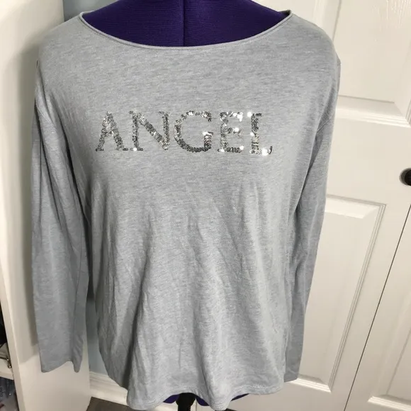 NWOT Victoria’s Secret Heather Gray Long Sleeve Tee with Silver Sequin “Angel” across the front and... Show more