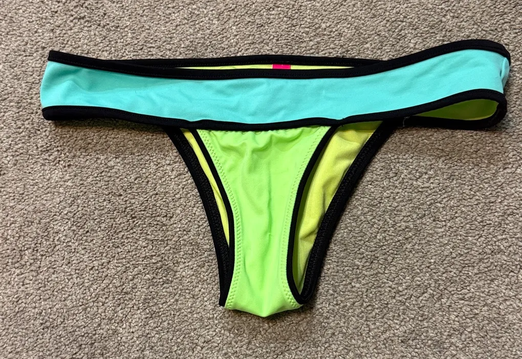 Victoria’s Secret Green / Aqua Black Trim Low Rise Cheeky Swim Bikini Bottoms Great Used Conditi... Show more