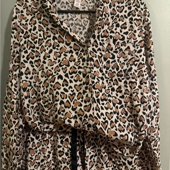 Stylish leopard print pajamas. Features black tie accents. Perfect for a goodnight sleep. Fast shipp... Show more