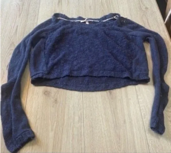 Stylish navy blue cropped sweater. Perfect for layering. Has holes as seen in last photos