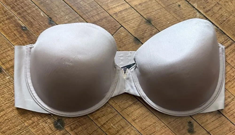 Victoria’s Secret multi-way, Nude, strapless, lined bra with underwire. Some minor wash wear, note t... Show more