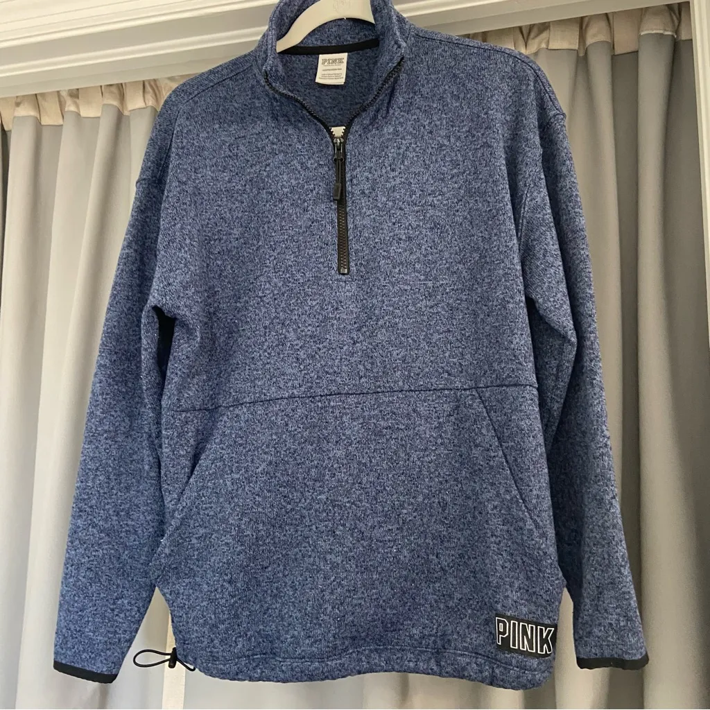 Victoria's Secret PINK blue marled 1/4 zip mock neck fleece jacket, pullover. Cozy Loungewear. Pocke... Show more