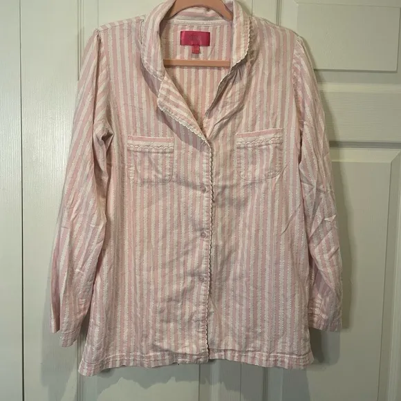 Victoria’s Secret Dreamer Pink Glittery Stripe Long Sleeve Sleep Top Size: M long Condition: gre... Show more