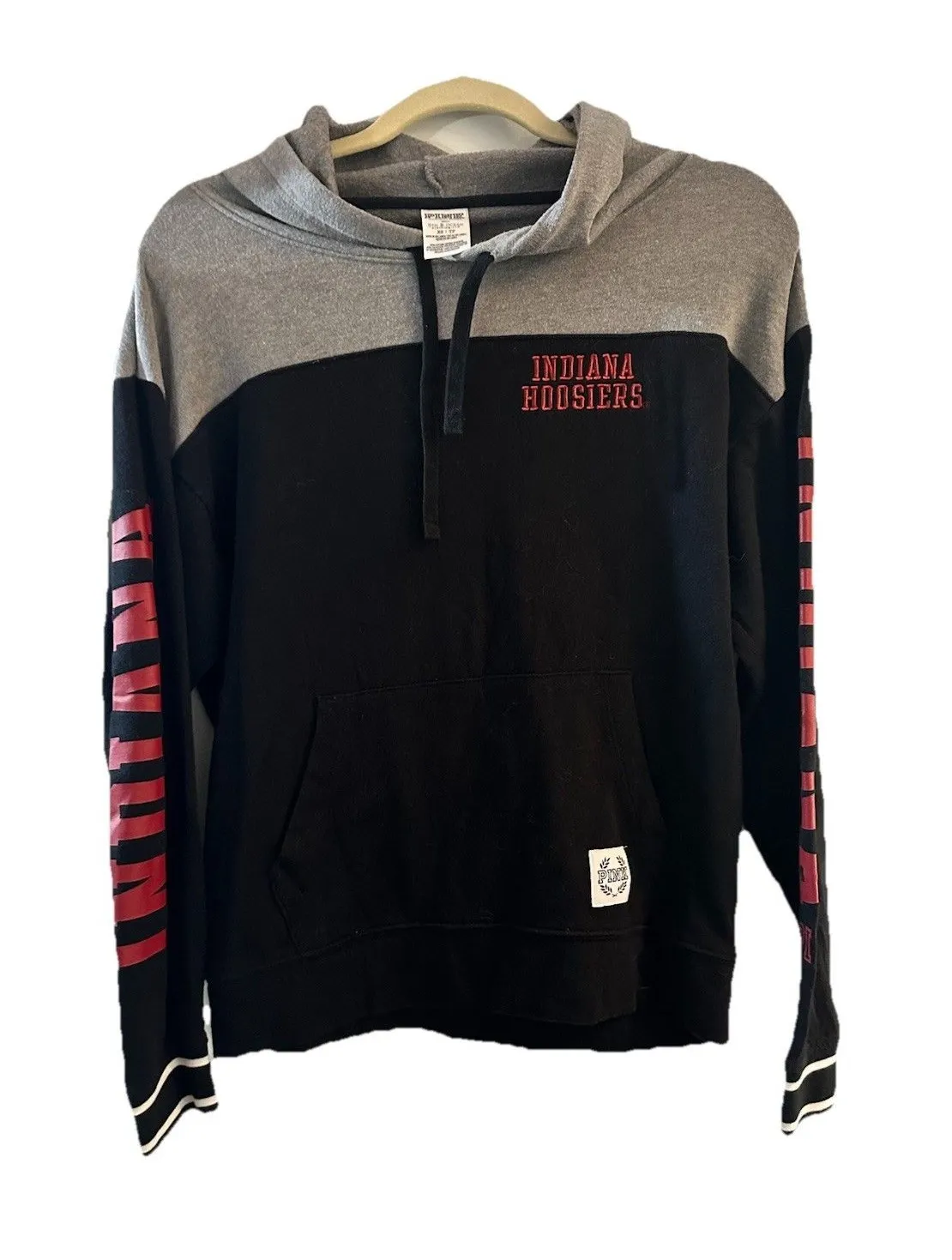 Victoria's Secret PINK IU Indiana Hoosiers Gray & Black Hoodie Sweatshirt Sz XS Pit to pit 22 Length... Show more
