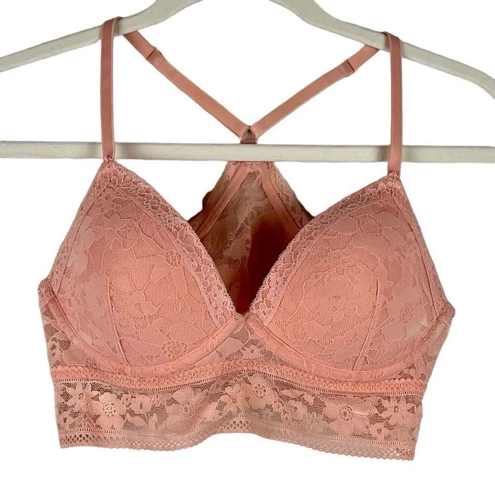Victoria’s Secret Pink Lace Pull-on Razorback Bra Light Padding Medium. There is some color fading f... Show more