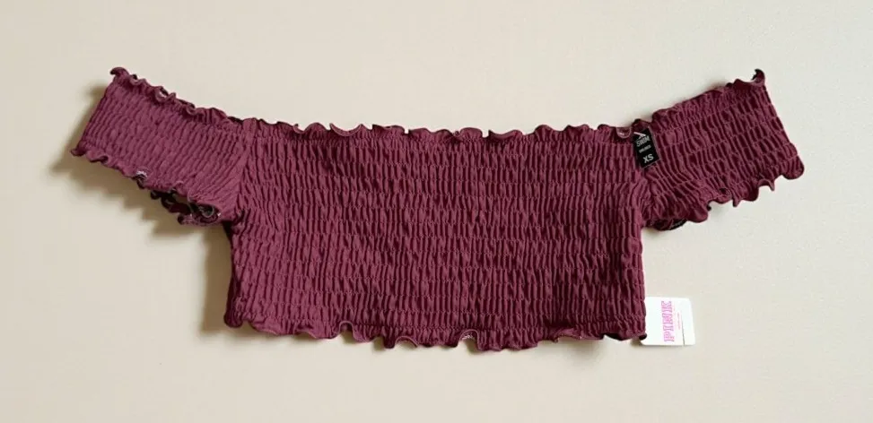 This Victoria's Secret PINK swim top features a chic off-the-shoulder design in a stylish mauve colo... Show more