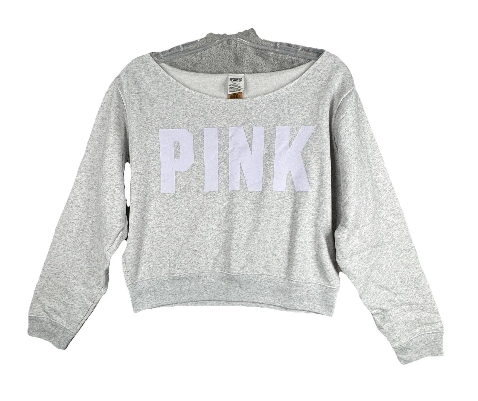 Victorias Secret PINK Shirt Womens Large Gray White Fleece Cropped Sweatshirt Women’s Size Large L... Show more