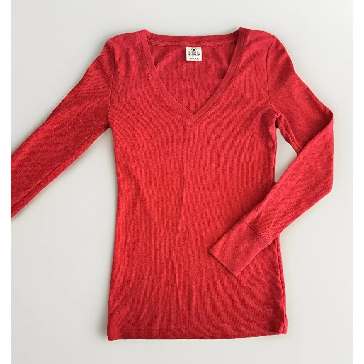 Chest 15 Length 24.5 Cotton/Poly Blend The VICTORIAS SECRET PINK Y2K 2000s Henley Top in red is a c... Show more