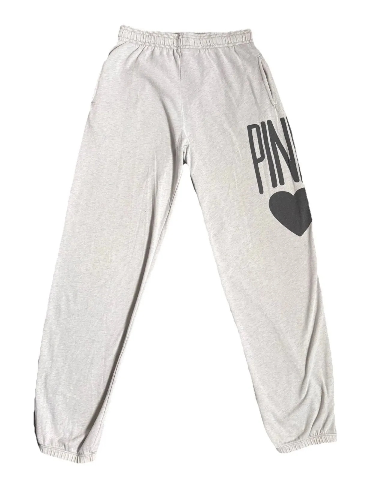 Victorias Secret Pink Y2K Grey Sweat Pants Logo Heart Pull String Waist Size XS. Loose fit so could... Show more