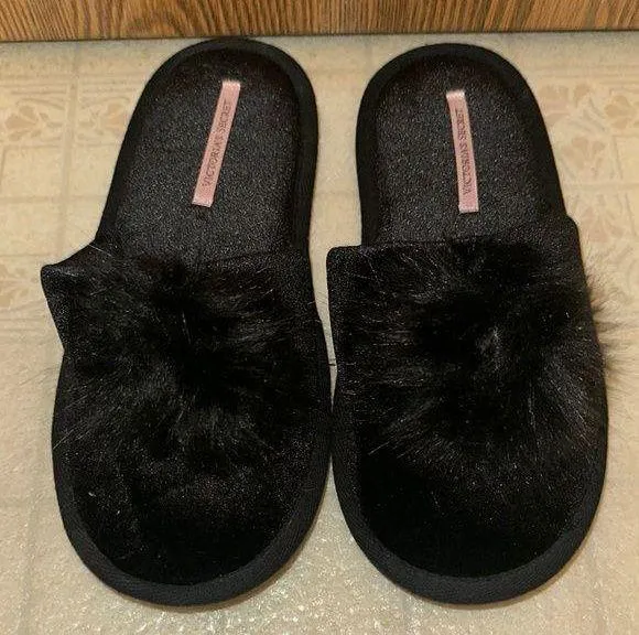 Victoria’s Secret Pom Pom Slippers Black Size L - $16 - From Abby