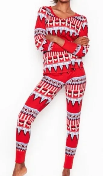 Cozy and stylish Victoria’s Secret pajama / lounge set featuring a bold red Fair Isle-inspired knit... Show more