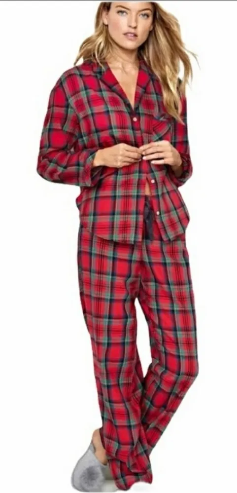 Long sleeve button down pajama shirt with single chest pockets that says “dream” Elastic waist draws... Show more