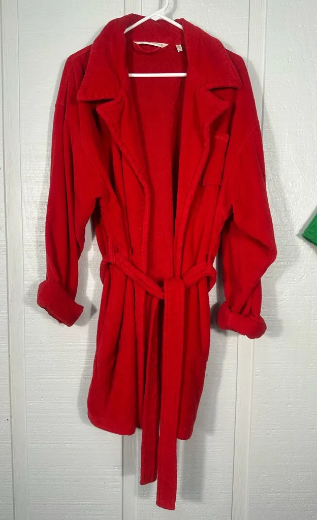Victorias Secret Red Terry Cloth Robe Size M/L EUC 19 inches pit to pit 36 inches long front