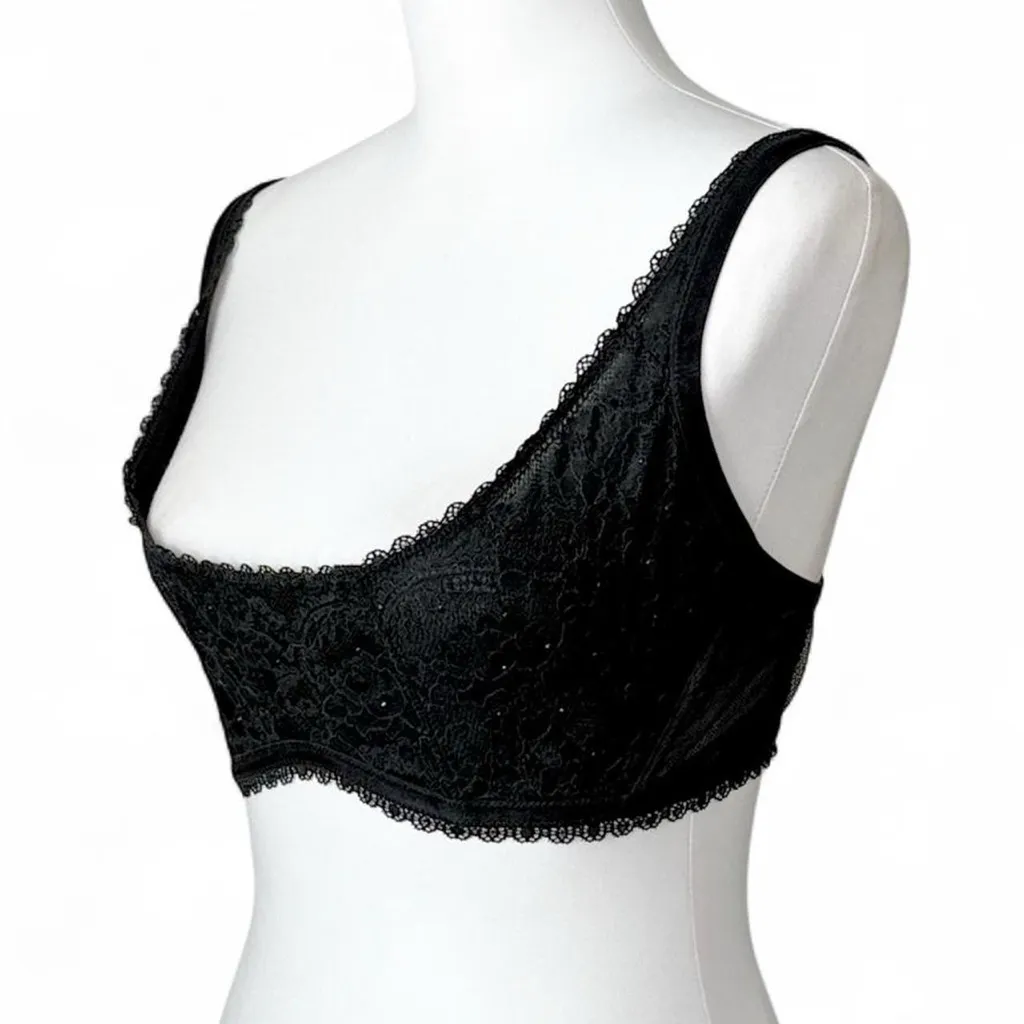 Victoria’s Secret Black Rhinestone Bra Excellent condition Large, no cups. Perfect for D Cups Has... Show more
