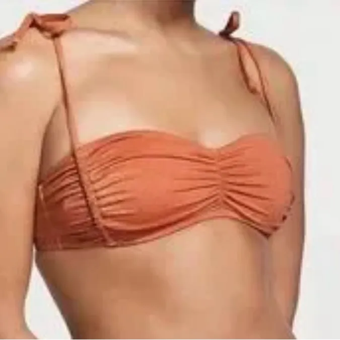 Stylish and comfortable orange bikini top perfect for beach days. Features adjustable straps for a c... Show more