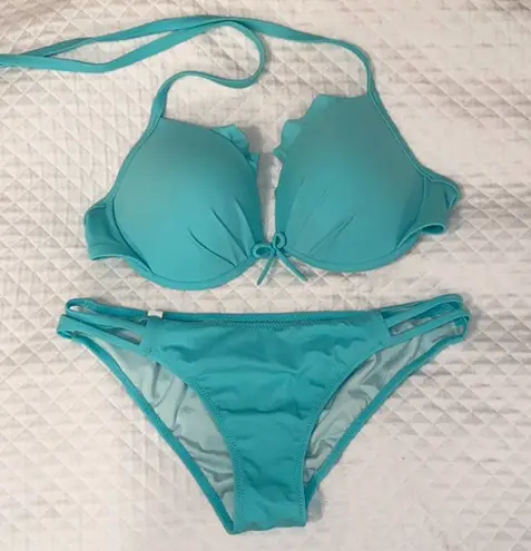 Flattering bikini set in wonderful condition with underwire. The top is a 34D and bottoms are mediu... Show more