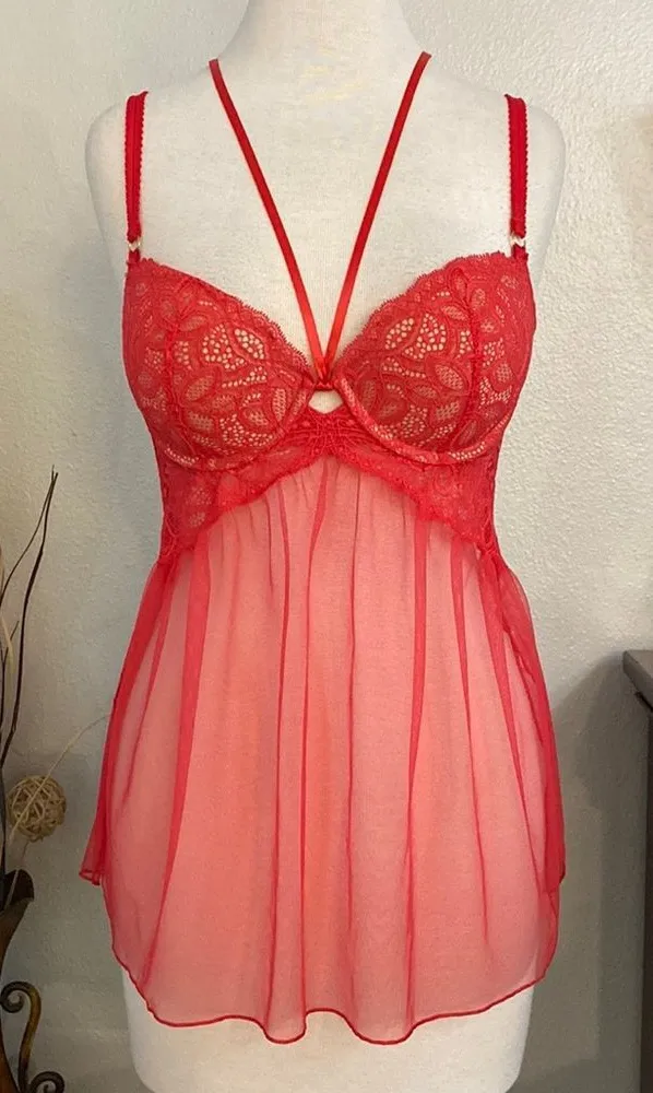 Victoria’s Secret Sheer Red Lace Push Up Baby Doll Slip Size 36C. Excellent condition! Red lace push... Show more