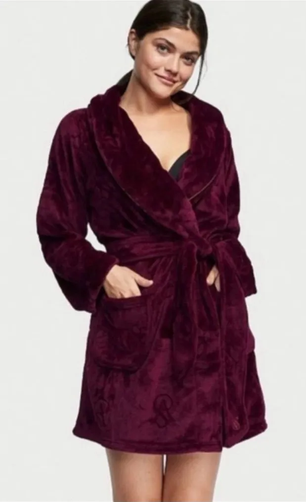 Victorias Secret Short Plush Robe Size M/L Plum/Burgundy NWT Please review all photos carefully as t... Show more
