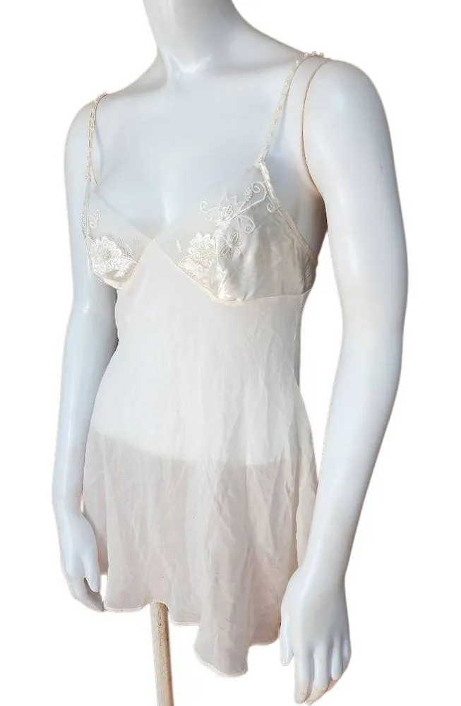 Victoria's Secret cream mesh chemise dress with a floral embroidered design and faux pearl accents.... Show more