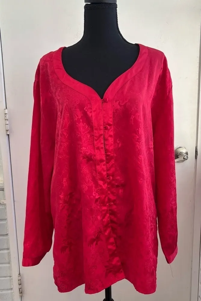 VINTAGE 1990’s Victorias Secret Silky Red Floral Oversized Kimono Pajama Shirt or Robe. Size large.... Show more