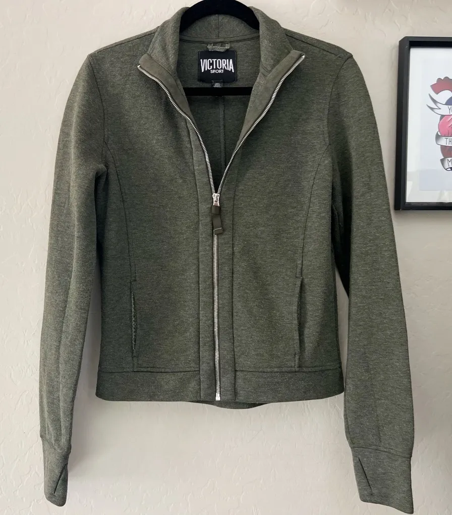 Victoria’s Secret Sport Zip-Up Jacket women’s small olive green full zip closure long sleeves with... Show more