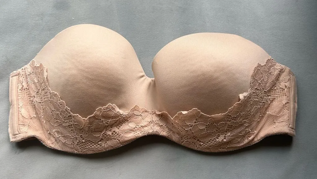 Victoria's Secret Body by Victoria Lightly Lined Strapless Bra in a nude/beige color with a lace tri... Show more