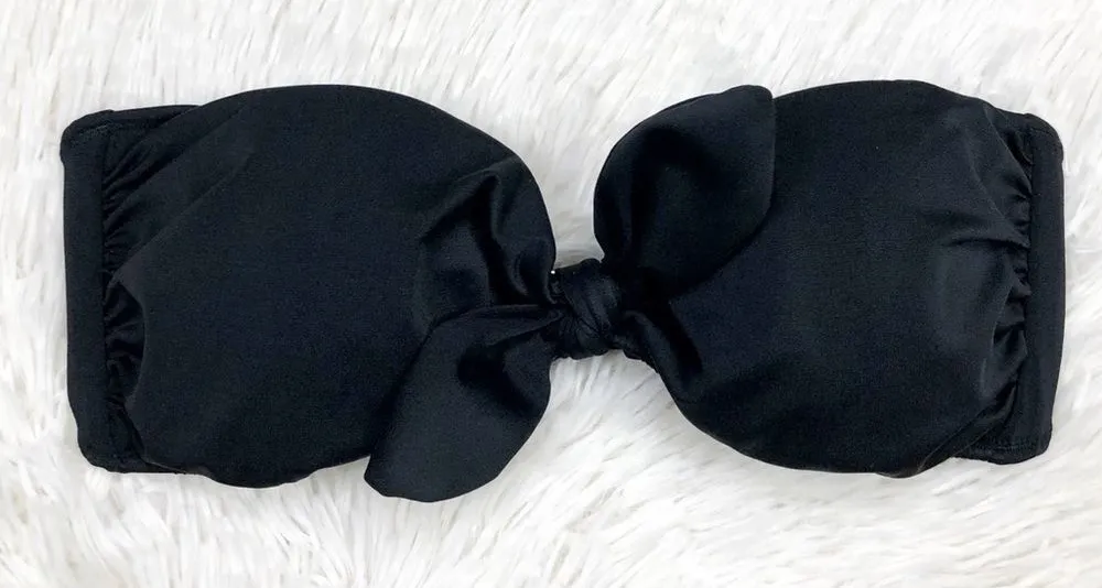 Super cute pre-owned Victoria’s Secret Swim black strapless bikini top size small. Tie front detail.... Show more