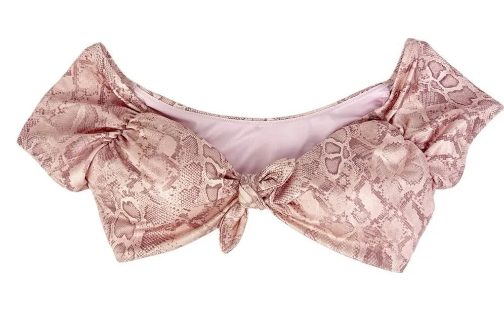 Super cute pre-owned Victoria’s Secret Swim Pink Snakeskin Bikini Top Size Large. Ties in front and... Show more