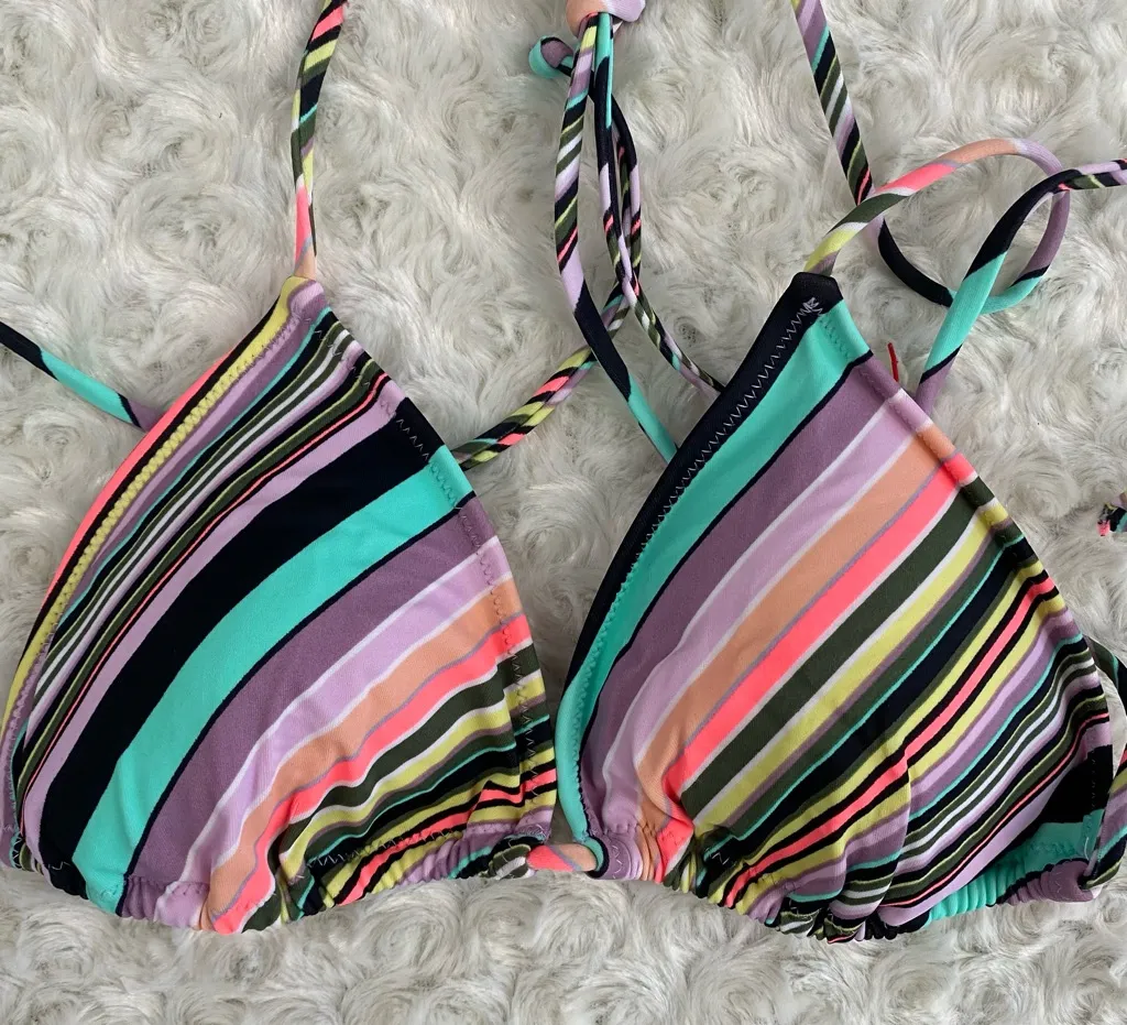 Multicolored swim top by Victoria’s Secret. Ties at neck and back. Size medium. Location 9