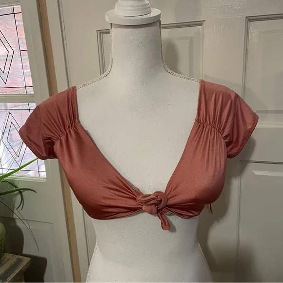 NWT. Victoria’s Secret Swim Top in a size medium. Knot tie on front. Short capped sleeves. Pull on s... Show more