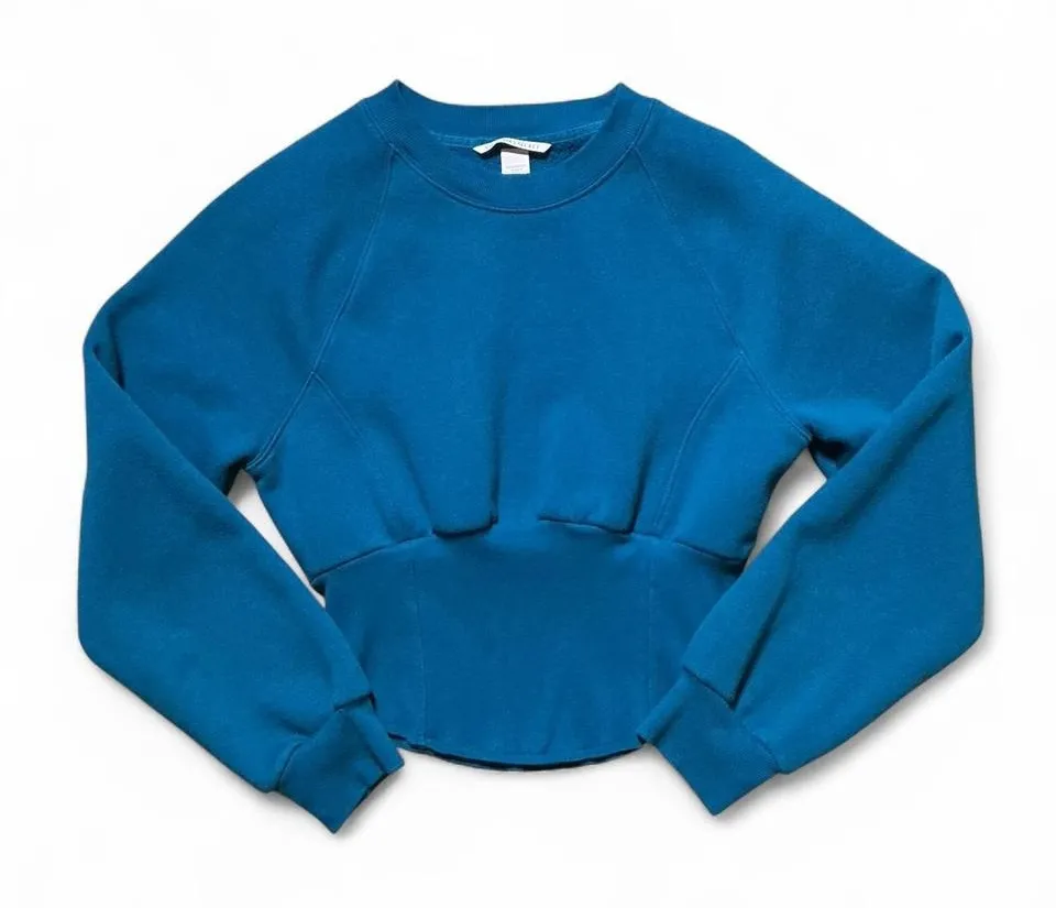 Victoria's Secret teal blue cropped sweatshirt. This long sleeve crew neck top features a flattering... Show more