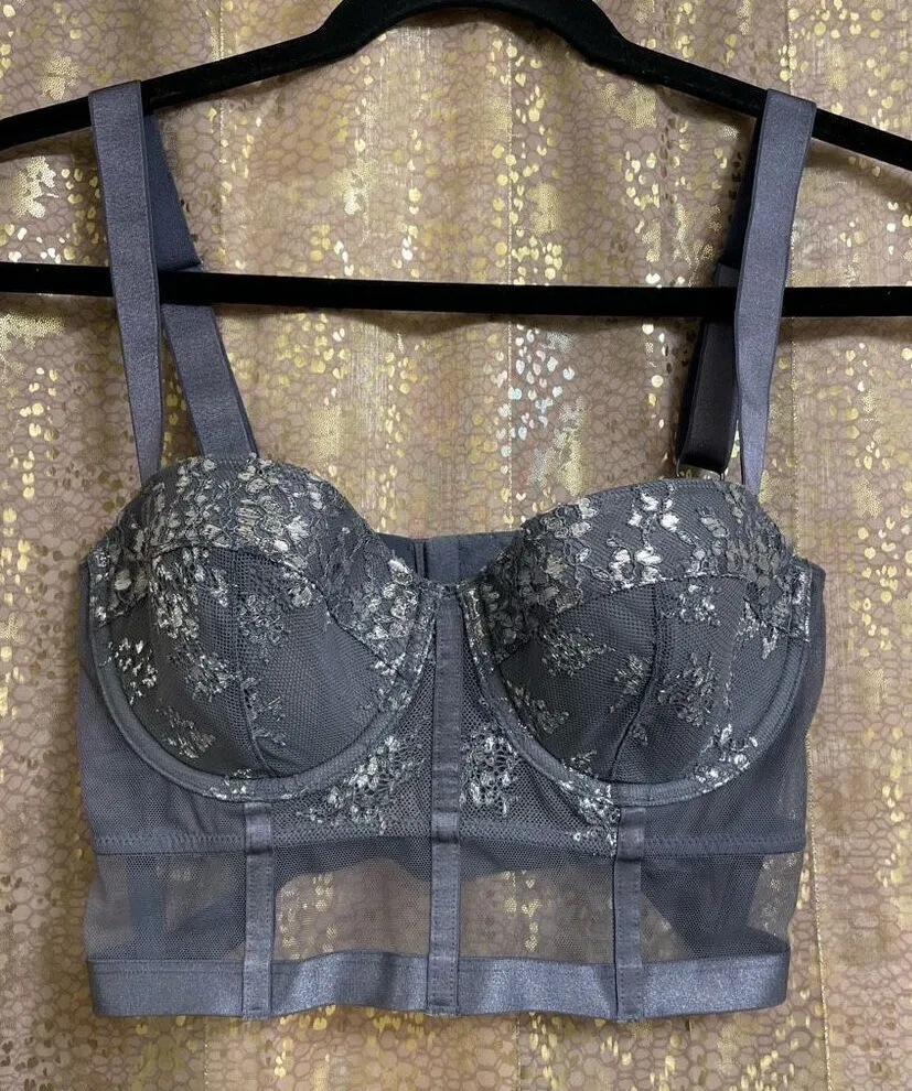 Victoria’s Secret Very Sexy Gray Silver Sparkle Lined Balconet Bra Top 34C Excellent condition, lik... Show more