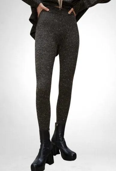 Victoria’s Secret Vintage 70's Crown Label Black Rib Knit Metallic High-waisted Leggings Size S - H... Show more