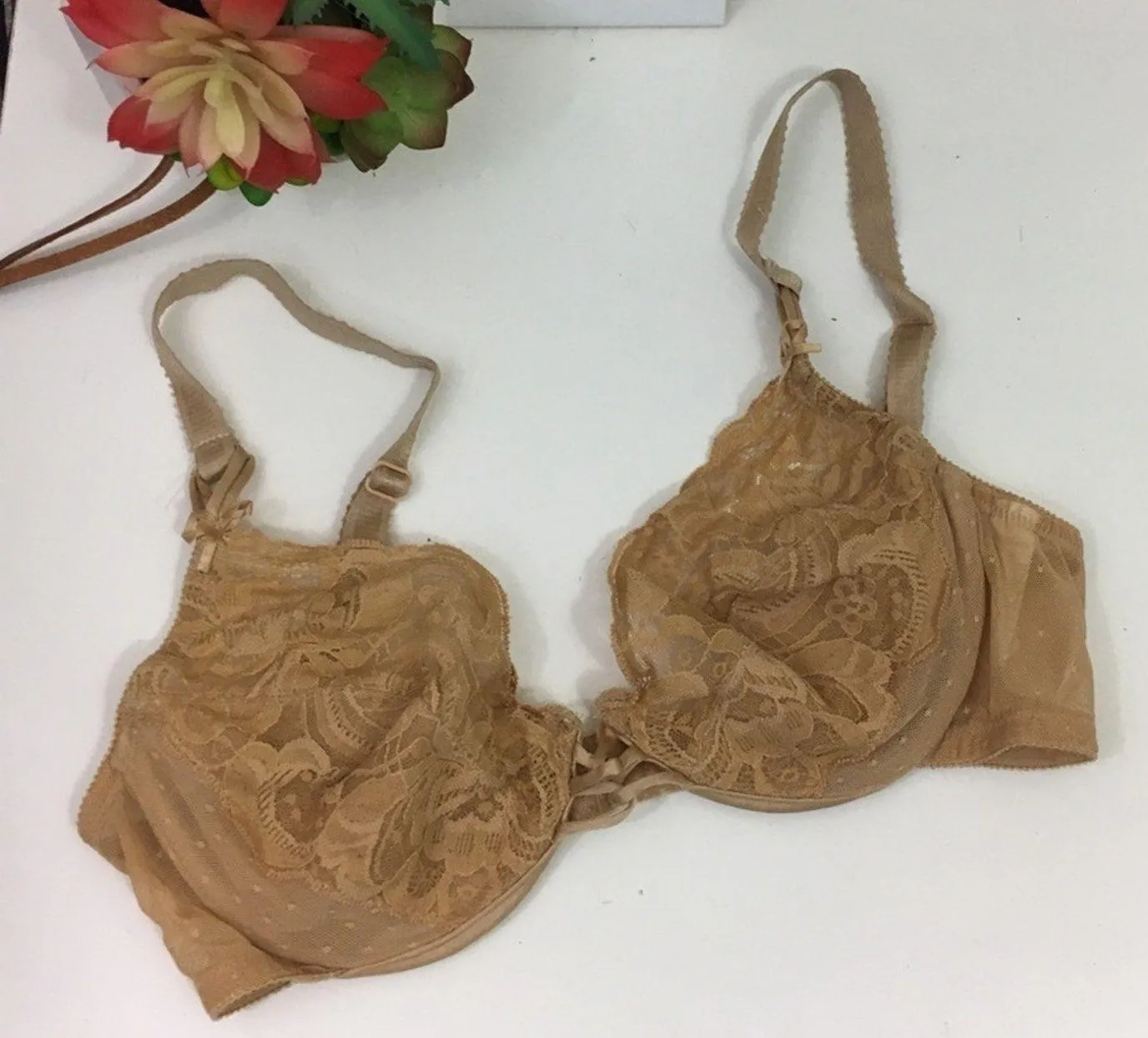 Underwire Sheer lace Partially lined Multiple clasp closure Great used vintage condition