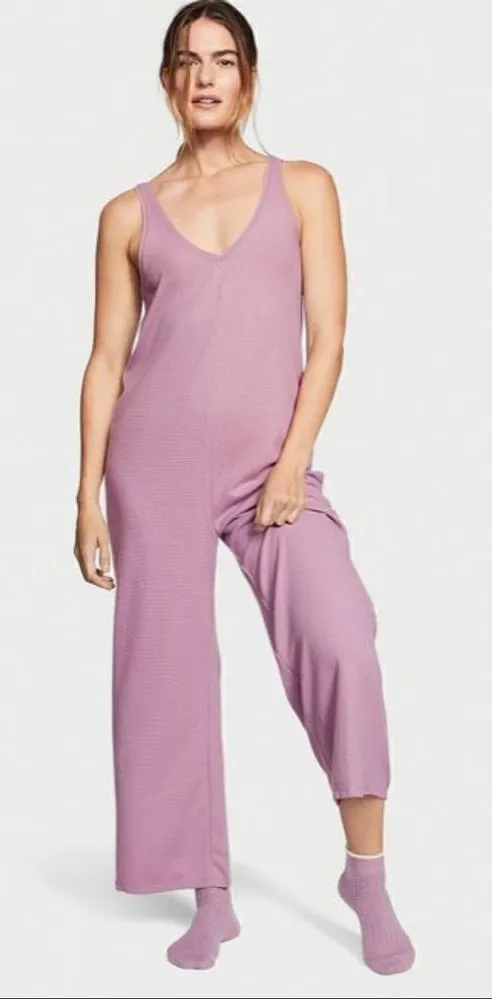 Victoria’s Secret Waffle Knit V Neck Jumpsuit Pajamas Size Medium Lavender purple color Soft waf... Show more
