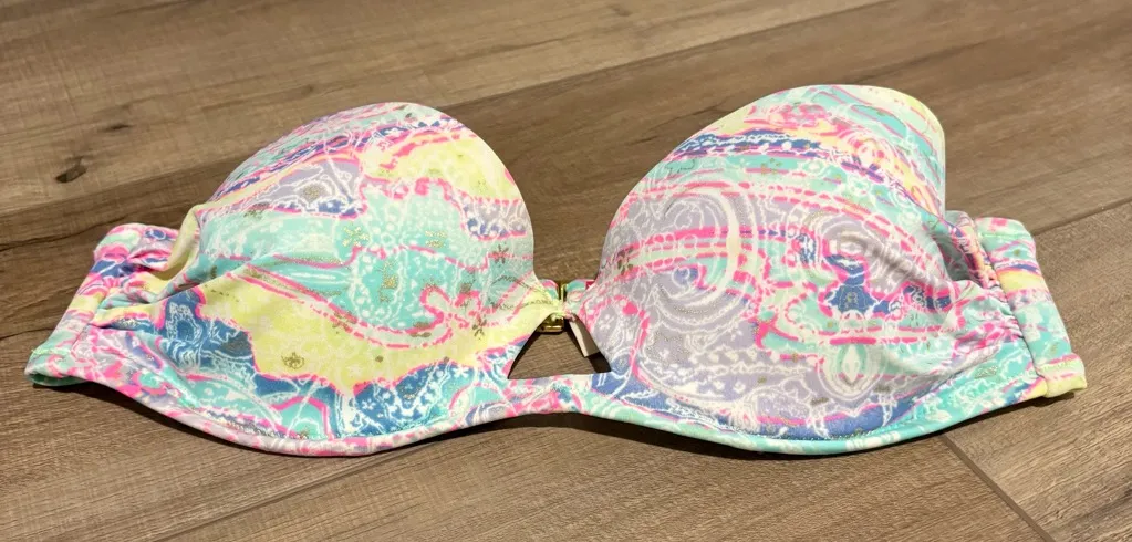 Victoria’s Secret Y2K Tie Dye Aztec Bandeau Bikini Top Pink Blue Size 34B. Cutout on front. Underwir... Show more