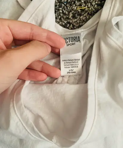 V.S. Sports, white shirt. Great workout shirt. It’s a size L. The back bunches up, you can see in th... Show more
