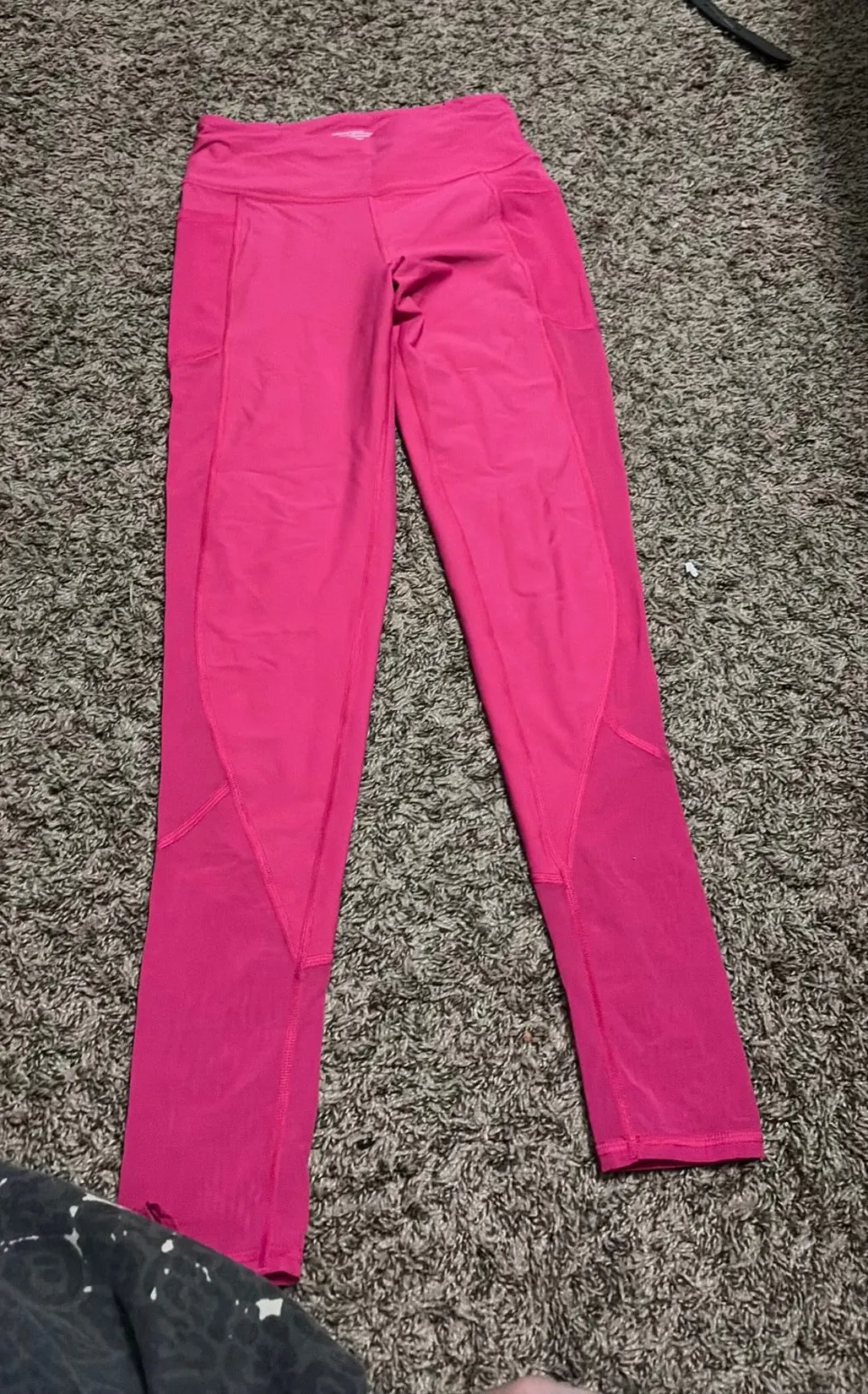 Super cute, bright pink leggings the ends are kind of a breathable mesh material and they are super... Show more