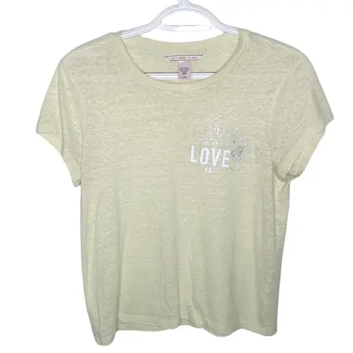 Victorias’s Secret pale yellow love graphic burnout t-shirt Great used condition, size M A fun casu... Show more