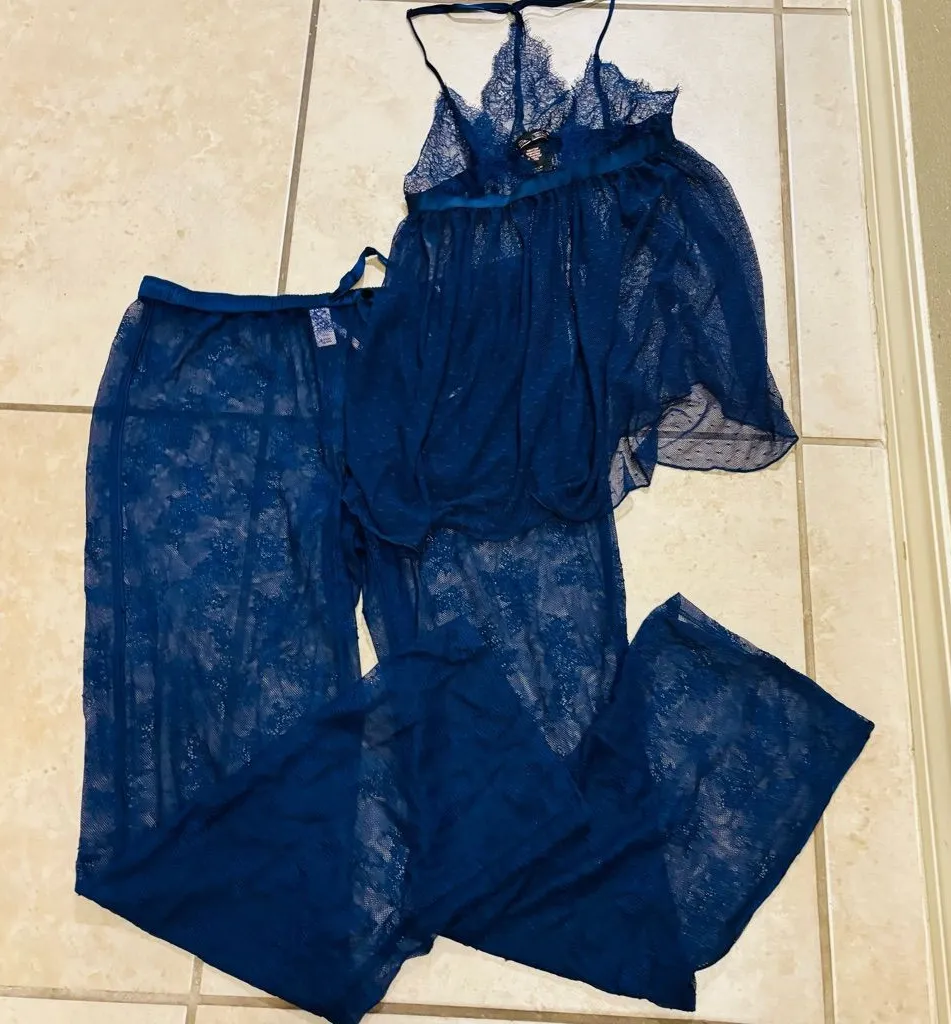 Victoriq secret babydoll top and bottom sleepwear set Blue - $55 - From Humble
