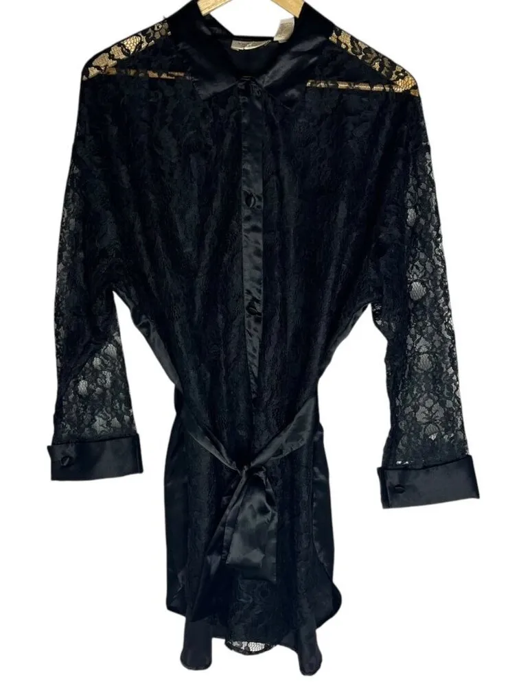 Vintage Gold Label Victorias Secret Satin And Lace Robe Black Whimsigoth M/L Size M/L Preowned/gen... Show more