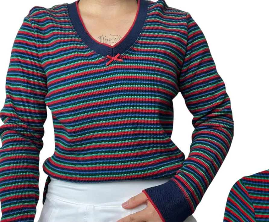 Victoria's Secret Vintage Striped Long Sleeve Bow Waffleknit Shirt Women's Size Small Size: Small... Show more