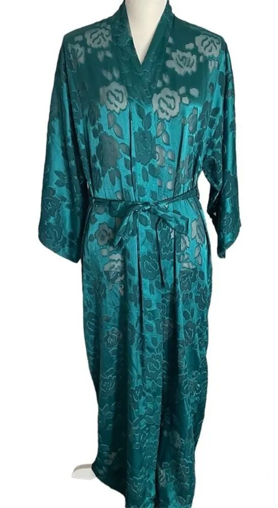 Vintage Victoria Secret Gold Label 70s 80s floral silky duster teal robe‎ Blue - $33 - From Snob