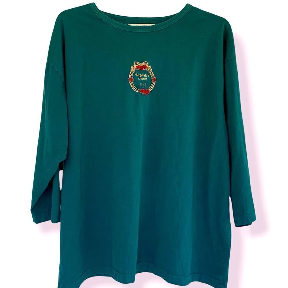 90’s Holiday themed 3/4 length sleeves t shirt from Victoria’s Secret Country label Dark Forrest gre... Show more