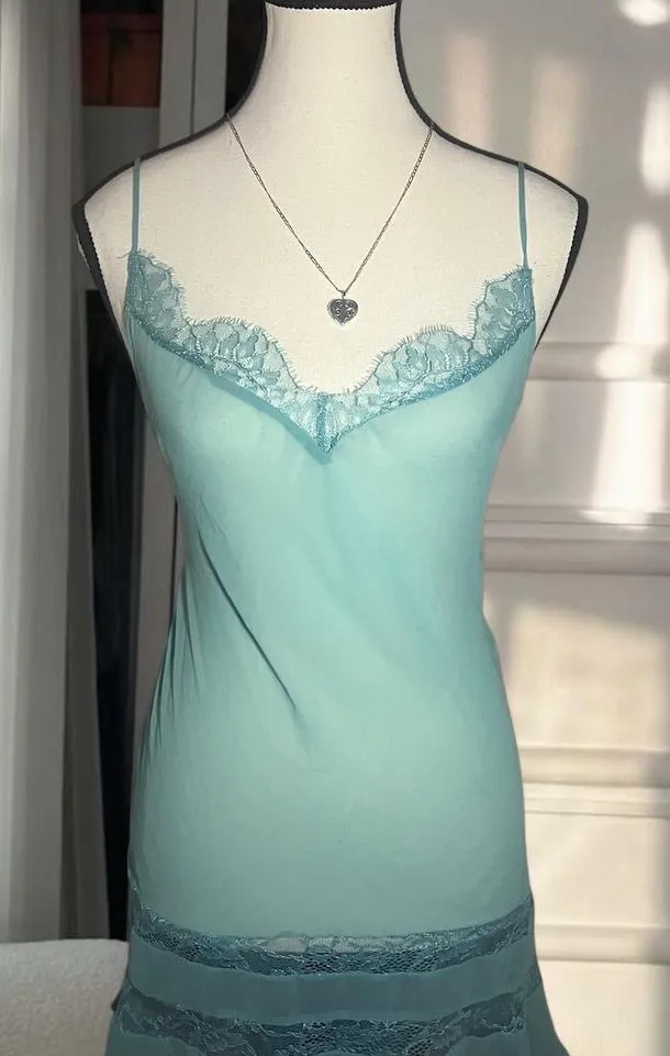 Vintage Victoria secret blue lace trim slip dress Size large Great condition #victoriasecret... Show more