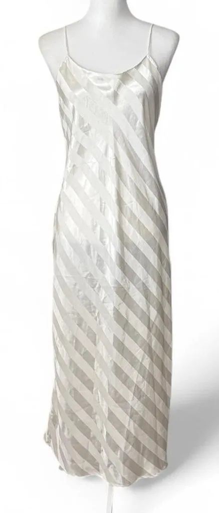 Vintage Victoria’s Secret Striped Maxi Slip Gown Great condition Medium 80s Ivory Asymmetrical str... Show more