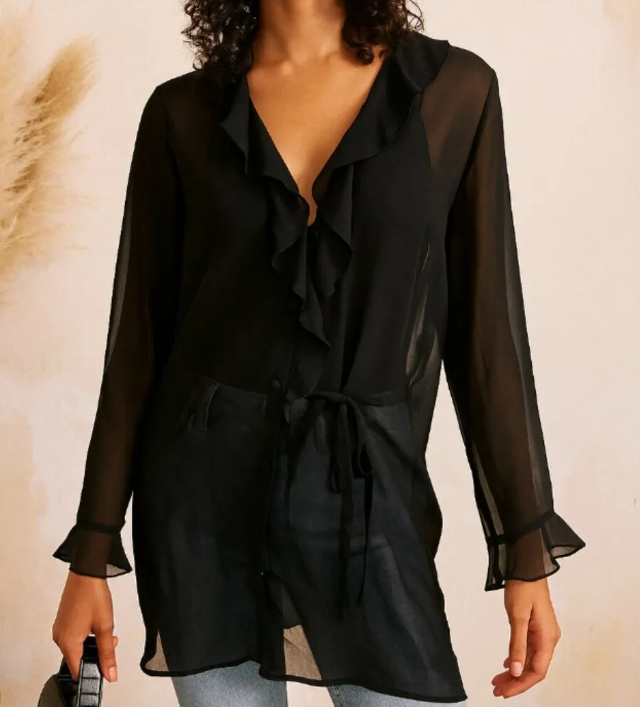 Add a touch of vintage allure to your wardrobe with this sheer long-sleeve top from Victoria’s Secr... Show more
